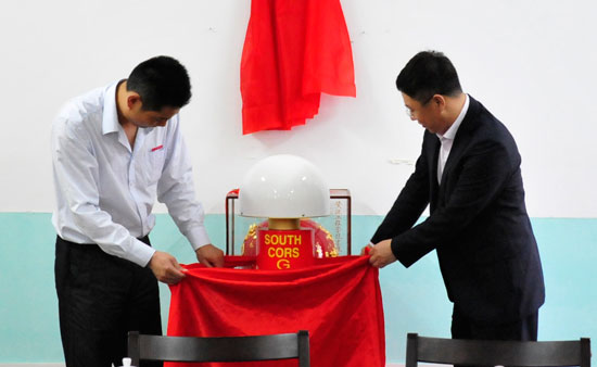 儀式上,福州分公司向龍巖學院捐贈了一批的教學儀器。李源江副院長和陳陽總經理共同為“龍巖學院人力資源培訓基地”揭牌。
