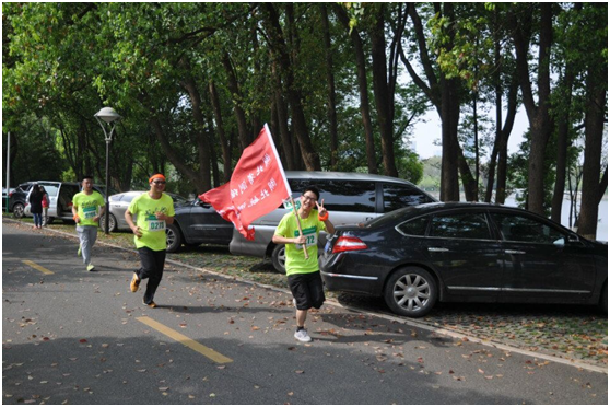 1日下午2點,2016南方測繪湖北用戶大會完滿結束后,輕松的樂跑活動也拉開了序幕。穿上南方統一發放的檸檬綠運動衫,帶上橙色的頭巾,放下工作,放下緊張,約一場與自己的長跑。省測繪地理信息局副局長、省測繪地理信息學會理事長何保國宣布活動正式開始。南方測繪集團湖北分公司總經理羅君致辭之后,由的體育教練帶領大家做跑前熱身運動,做好準備工作。比賽正式開始前,由武漢市測繪研究院肖建華院長鳴槍,比賽正式開始。