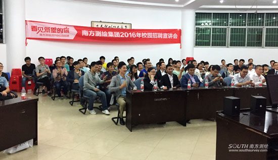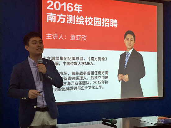 【人力資源管理中心 汪夏英】2015年10月15日晚上七點(diǎn),“看見新星的你”南方測繪2016校園招聘宣講會武漢站的第2場在中國地質(zhì)大學(xué)舉行。南方測繪集團(tuán)人力資源管理中心總監(jiān)黃曦、品牌宣傳與企劃中心總監(jiān)董亞欣、企業(yè)管理中心總監(jiān)向高照、武漢分公司總經(jīng)理羅君以及導(dǎo)航研發(fā)部、市場部經(jīng)理等人出席。