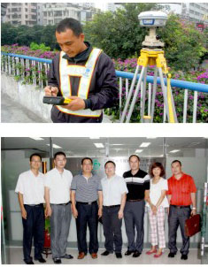 廣州市城市規劃勘測設計研究院林鴻總測量師(左三)張榮副總測量師(右二)丘廣新副總工程師(左二)陳煥然隊長(右三)合影