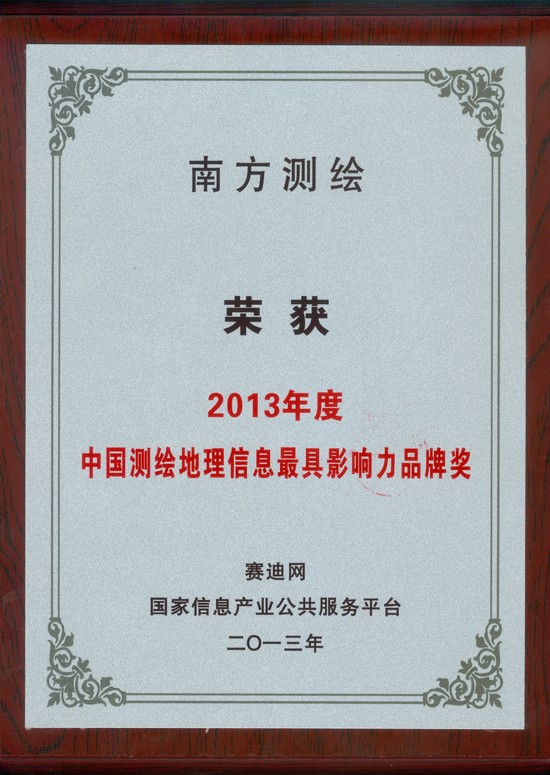 南方測繪獲2013中國測繪地理信息具影響力品牌