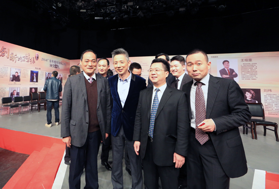 南方測繪總經理馬超與江蘇衛視《強大腦》主持人、本次評選特約嘉賓蔣昌建(左二)愉快交流
