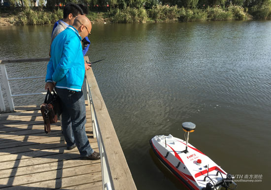 【武漢分公司 周華】10月28日,南方測繪技術人員在武漢市漢口江灘內湖給湖北部分測量單位客戶以及長江航道局等客戶進行了南方智能測量無人船的演示。