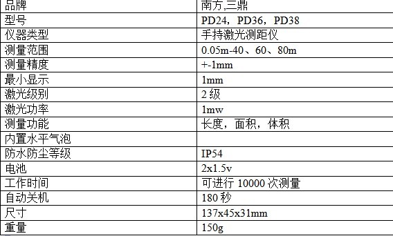 PD-3系列手持測(cè)距儀四行屏幕顯示功能,直接按下直觀按鍵,輕松方便地進(jìn)行距離加減及面積或者體積的計(jì)算。